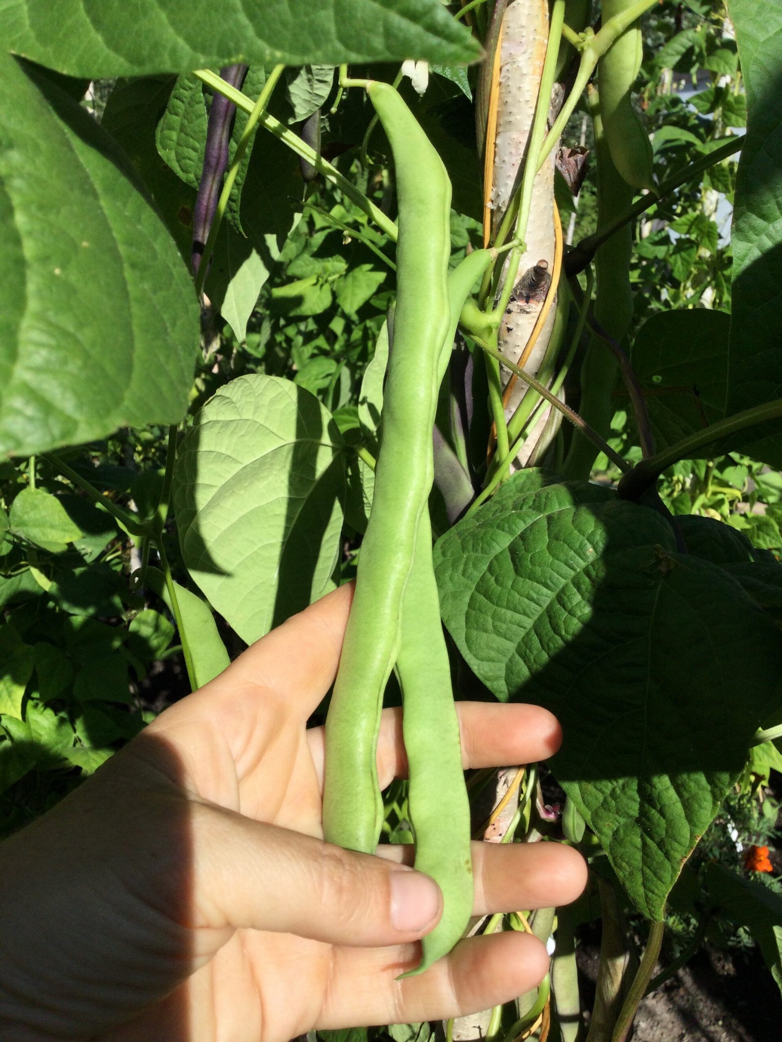 True to the comedy of life, of the 75+ poles I installed for the 2025 beans this was the first one to get to the top of its pole! I can only guess whoever named it really knew what they were doing. The pods were two colors, some green, some purple. There is both a purple version of this bean (Ryder’s Blue Coco) and a green one, so I’m not sure if both may have been in my packet – because aside from color the pods were the same. There also may have been a cross. This bean was once offered by the Ryder’s of St. Albans company, a historic British seed seller. It is no longer commonly found, as the seed company & its catalogue has been discontinued. For now I will offer seeds for both colors in Ryder’s Top ‘O’ The Pole, which have different colored seeds. Excellent bean pods, high yields, and early maturity. The total package in this one.