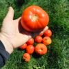 An interesting, high yielding tomato variety. Fairly large red fruits, but the sizes of each can be surprisingly variable. The plants must be supported well as it will topple over from the weight of the tomatoes. Makes a great slicing tomato.